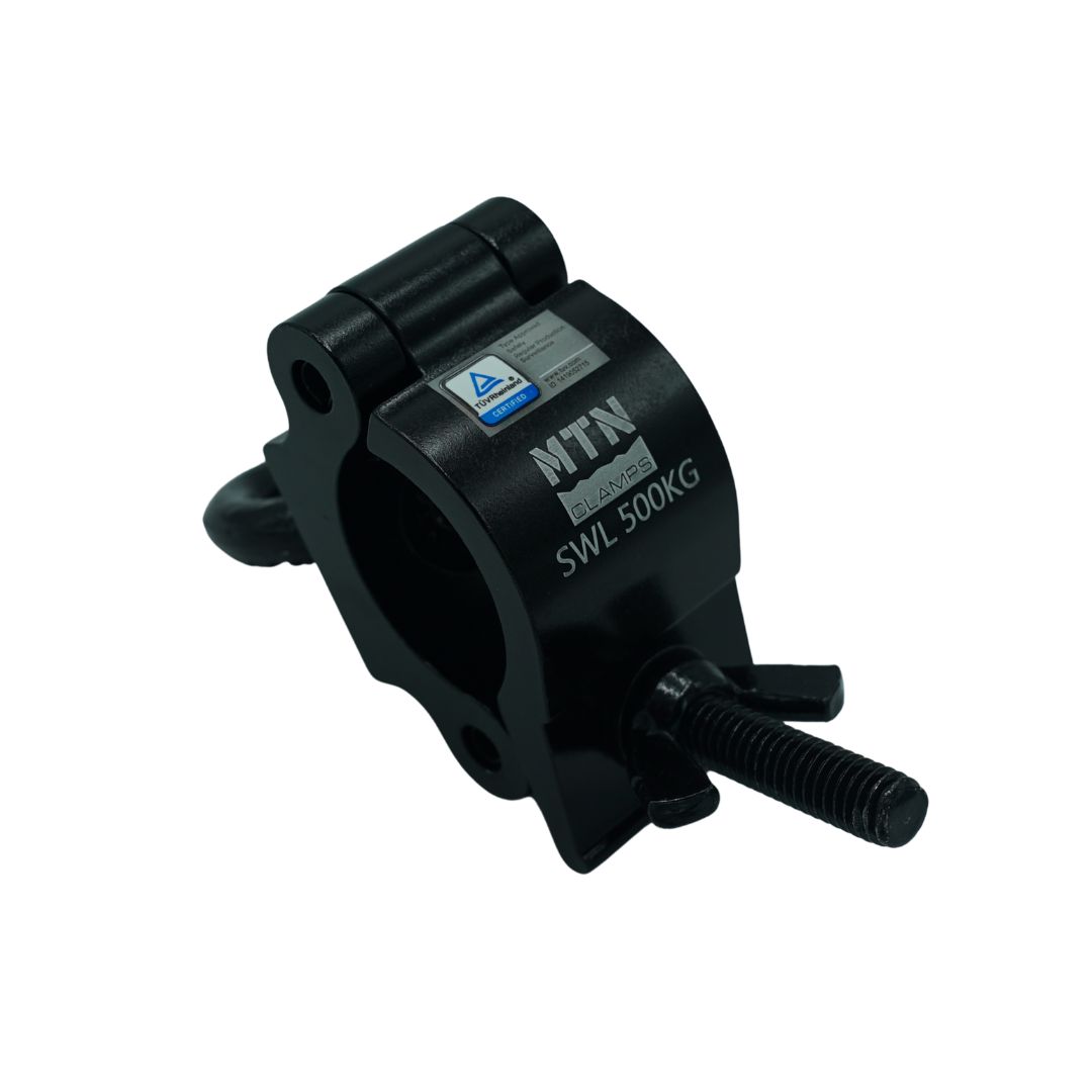 The MTN Half Coupler features an M12 ring nut for secure fastening. TUV certified, it is available in silver polished or black anodized finishes offering durability and versatility.